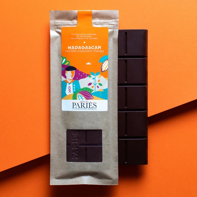 Cette tablette de chocolat noir Madagascar 85% est donc un chocolat 100% Pariès : une tablette tree to bar (de l'arbre à la tablette).